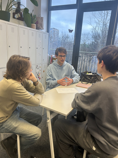 Magda Birecka z TOK FM prowadzi dla uczniów drugich klas serię warsztatów podcastowych. Na koniec semestru i roku szkolnego uczniowie w ramach edukacji medialnej przygotują już swoje podcasty.