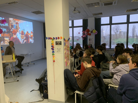 Jesteśmy w roku wyborczym, zatem rozmowa o wyborach była uzasadniona. Zaprosiliśmy Adama Sauera z Fundacji Solidarności Międzynarodowej, który podzielił się z uczennicami i uczniami naszej szkoły swoim doświadczeniem udziału w międzynarodowych misjach obserwacji wyborów organizowanych przez OSCE/ODIHR lub Unię Europejską.