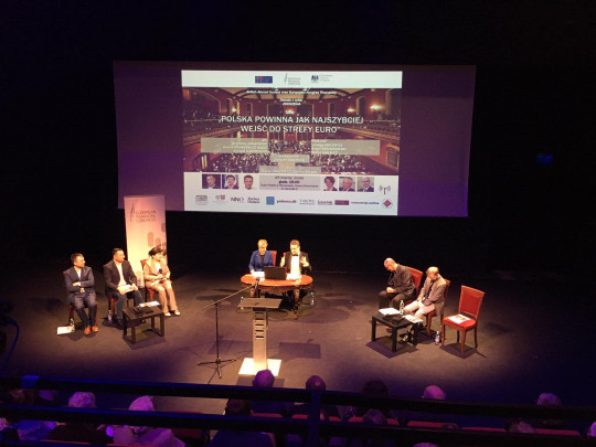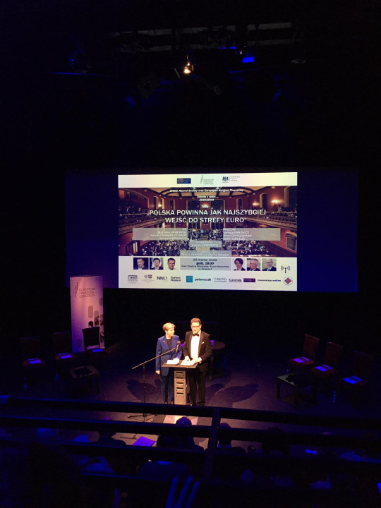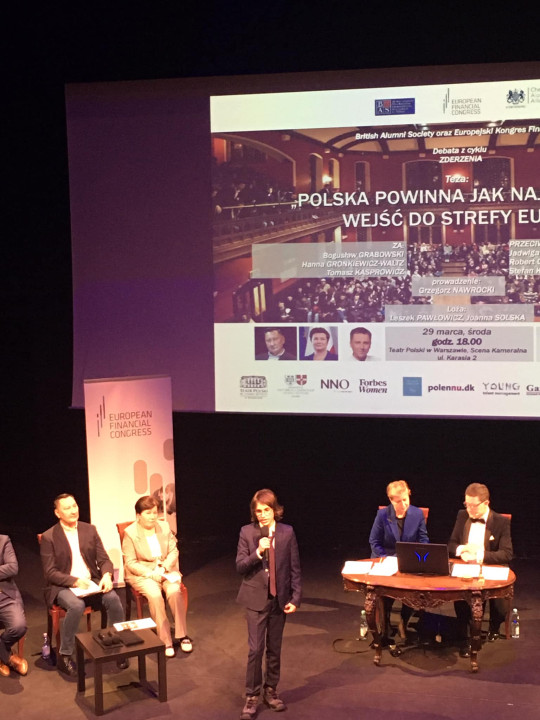 BiNGO, czyli grupa ze specjalizacji społeczno-biznesowej, czasami zagląda do teatru. Dzisiaj byliśmy na debacie „Polska powinna jak najszybciej wejść do strefy EURO”. To była możliwość poznania argumentów za i przeciw tezie, wysłuchania dyskusji praktyków i polityków - w dyskusji brali udział m.in. były wiceminister finansów Stefan Kawalec, obecny wiceminister finansów Piotr Patkowski, byla prezes NBP Hanna Gronkiewicz-Waltz. Braliśmy też czynny udział w debacie - uczeń klasy pierwszej, Luca, w części pytań do ekspertów pierwszy zabral głos! To wymagało odwagi - przemawiać ma scenie Teatru Polskiego!