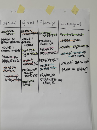 W ramach tygodnia projektowego rozmawialiśmy o tożsamości, prawach i obowiązkach obywatela, definiowaliśmy też obowiązki państwa wobec obywatela. Mówiliśmy też o kompetencjach sejmu i senatu. Analizowaliśmy też zapisy Konstytucji RP dotyczące władzy ustawodawczej, wykonawczej i sądowniczej. A podczas warsztatów z Fundacja Edukacja dla Demokracji dyskutowaliśmy, jakie funkcje państwa są dla nas najważniejsze. Mieliśmy też możliwość uczestniczyć w prezentacjach semestralnych studentów Artes Liberales Uniwersytetu Warszawskiego - to było doświadczenie, w czasie którego to my udzielaliśmy informacji zwrotnej. W czasie jednego tygodnia projektowego odwiedziliśmy 👉 Muzeum Historii Żydów Polskich POLIN 👉 Sejm Rzeczypospolitej Polskiej 👉 Wydział „Artes Liberales” UW