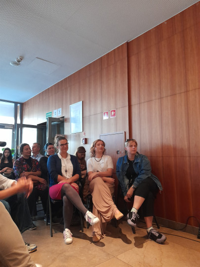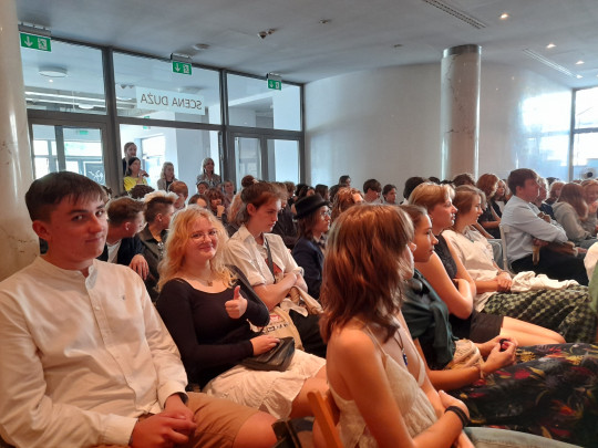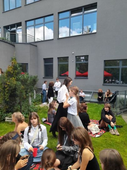 Nauczycielki i nauczyciele przywitali się z młodzieżą, a o wartościach, którymi kieruje się szkoła, opowiedziała nowa wicedyrektorka Agnieszka-Mysiak Wrzeszcz. O wspólnocie, ciekawości świata, radości z bycia razem, uważności, autentyczności, wolności, odpowiedzialności i odwadze w działaniu.