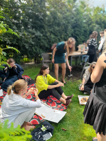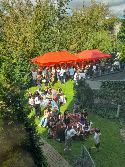 Po oficjalnym rozpoczęciu roku przenieśliśmy się do szkoły na piknik. Było słonecznie i smacznie. Zjedliśmy 55 kartonów pizzy