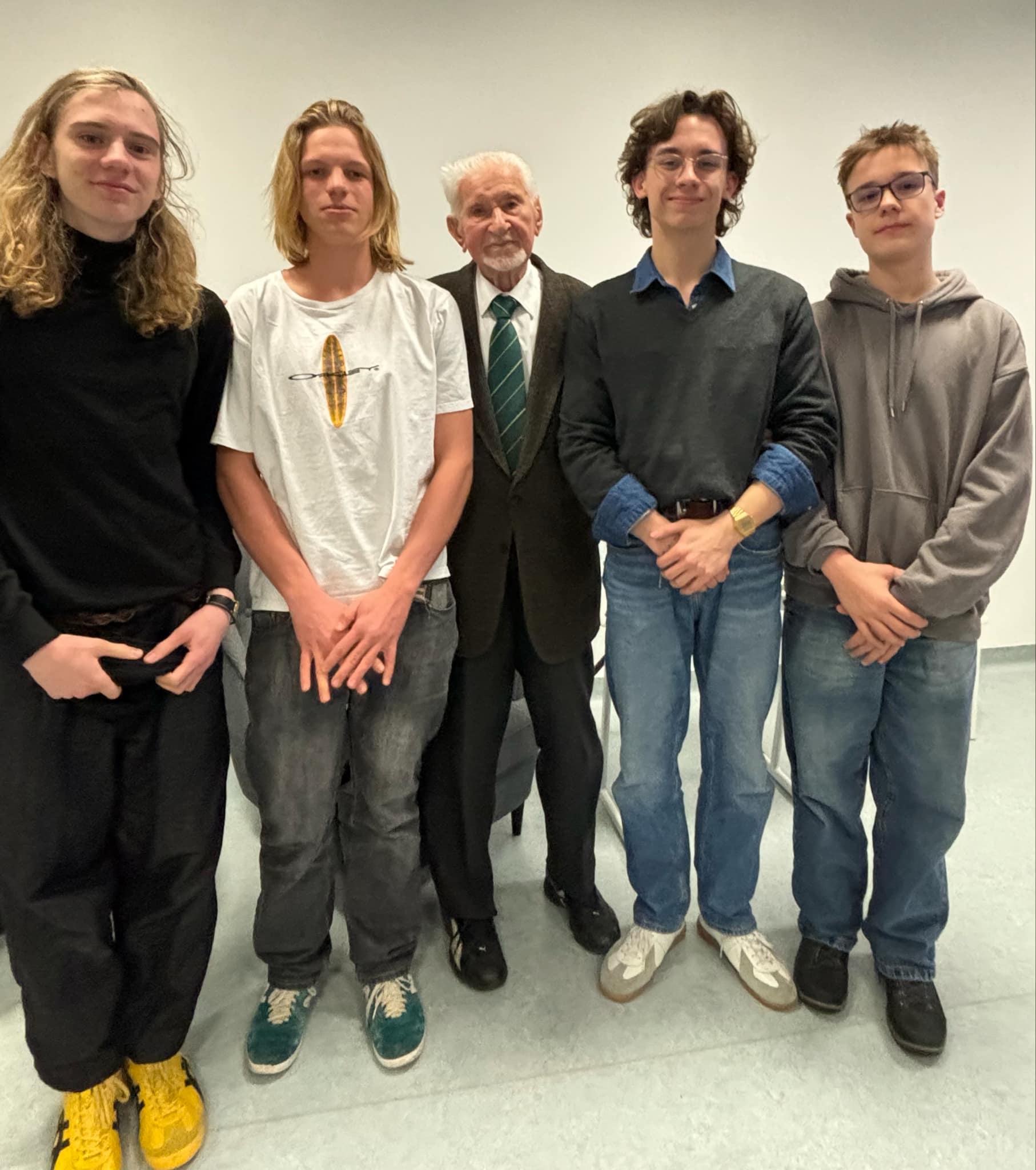 Wizyta pana profesora Leszka Żukowskiego, uczestnika powstania warszawskiego i byłego więźnia obozu koncentracyjnego we Flossenburgu to już tradycja w naszej szkole. Słuchamy o wojennych ulicach Warszawy, o walce, o życiu w obozach koncentracyjnych, o próbach sabotażu, o tym, jak nastoletni chłopiec w czasie wojny musiał być racjonalnym, liczącym tylko na siebie dorosłym. Rozmawiamy o tym, czym jest odwaga.