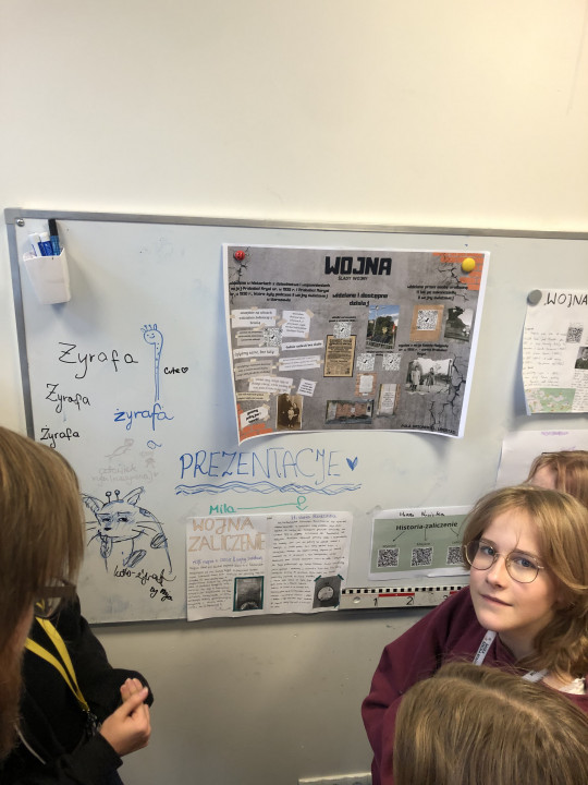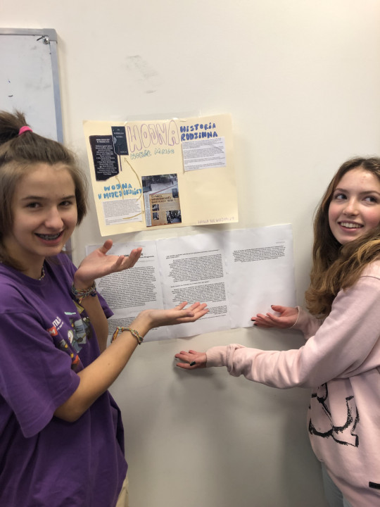 "Wojna wokół mnie" - zadaniem Uczennic i Uczniów klas pierwszych było opowiedzenie o doświadczeniu wojny na podstawie historii rodzinnych, historii lokalnej oraz na podstawie aktualnych wydarzeń w kontekście wojny na Ukrainie.