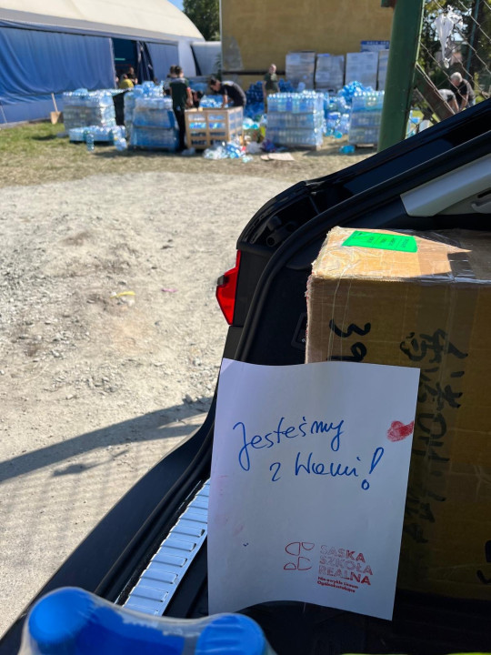 Zebraliśmy duuuużo potrzebnych rzeczy dla osób, które ucierpiały podczas powodzi! Część spakowaliśmy do samochodu i już jutro będą w Kamieńcu Ząbkowickim. Z tamtejszego hubu logistycznego zebrane produkty trafią do mieszkańców gminy. Przekazaliśmy przede wszystkim: gumowe rękawiczki, worki na śmieci, ręczniki papierowe, środki higieniczne (mydło, szczoteczki i pasta do zębów, żele pod prysznic), pampersy, karma dla zwierząt, środki do dezynfekcji, środki czystości. Zapakowaliśmy też konserwy, gotowe dania, woda, trochę słodyczy… To, co zostało jeszcze w piątkowe popołudnie zawieźliśmy do magazynu Stacji Uzdatniania Wody „Filtry”. Pomagamy, jak możemy.